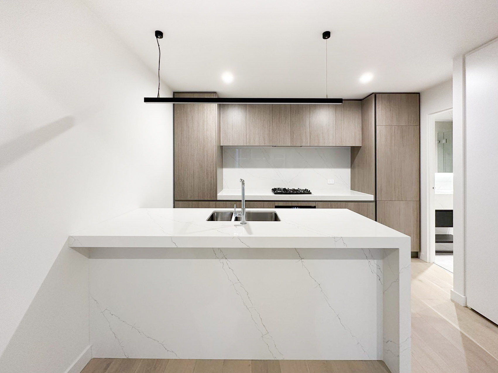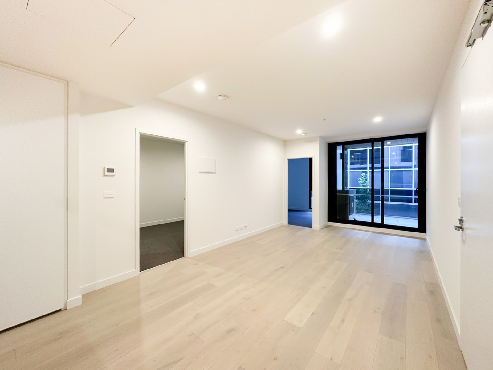 Step inside and be greeted by timber flooring and natural light that fills the open-plan living and dining area. The kitchen is both sleek and practical, featuring Siemens appliances, a built-in fridge, and stone benchtops. Enjoy quiet mornings or evenings on your private balcony, accessible from the main living space.